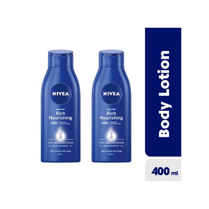 The NIVEA Rich Nourishing body transforms your very dry skin into deeply moisturized and noticeably smoother skin for 48h. Infused with the NIVEA Deep Moisture Serum, natural almond oil and vitamin E. The patented NIVEA formula uses the knowledge, that our skin contains sufficient moisture in its deeper layers.