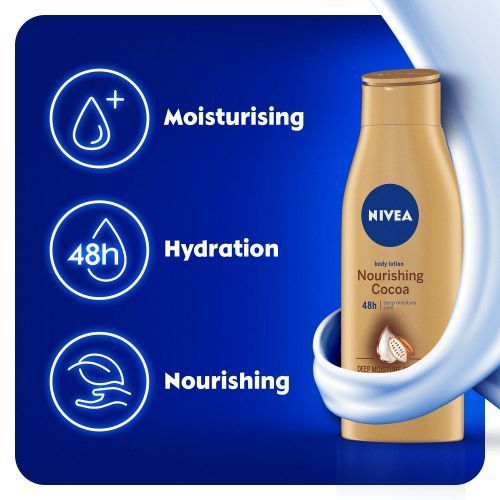 The NIVEA Rich Nourishing body transforms your very dry skin into deeply moisturized and noticeably smoother skin for 48h. Infused with the NIVEA Deep Moisture Serum, natural almond oil and vitamin E. The patented NIVEA formula uses the knowledge, that our skin contains sufficient moisture in its deeper layers.